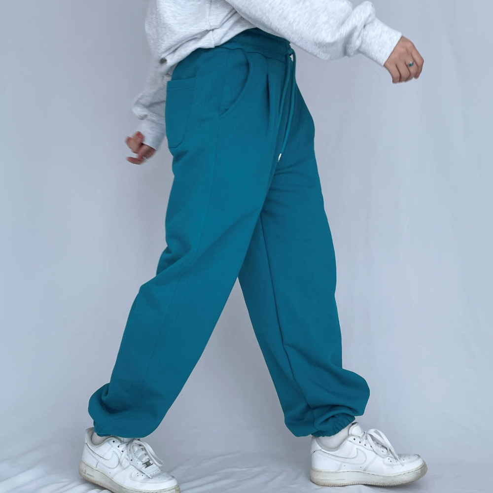 청록 와이드 핀턱 조거 팬츠