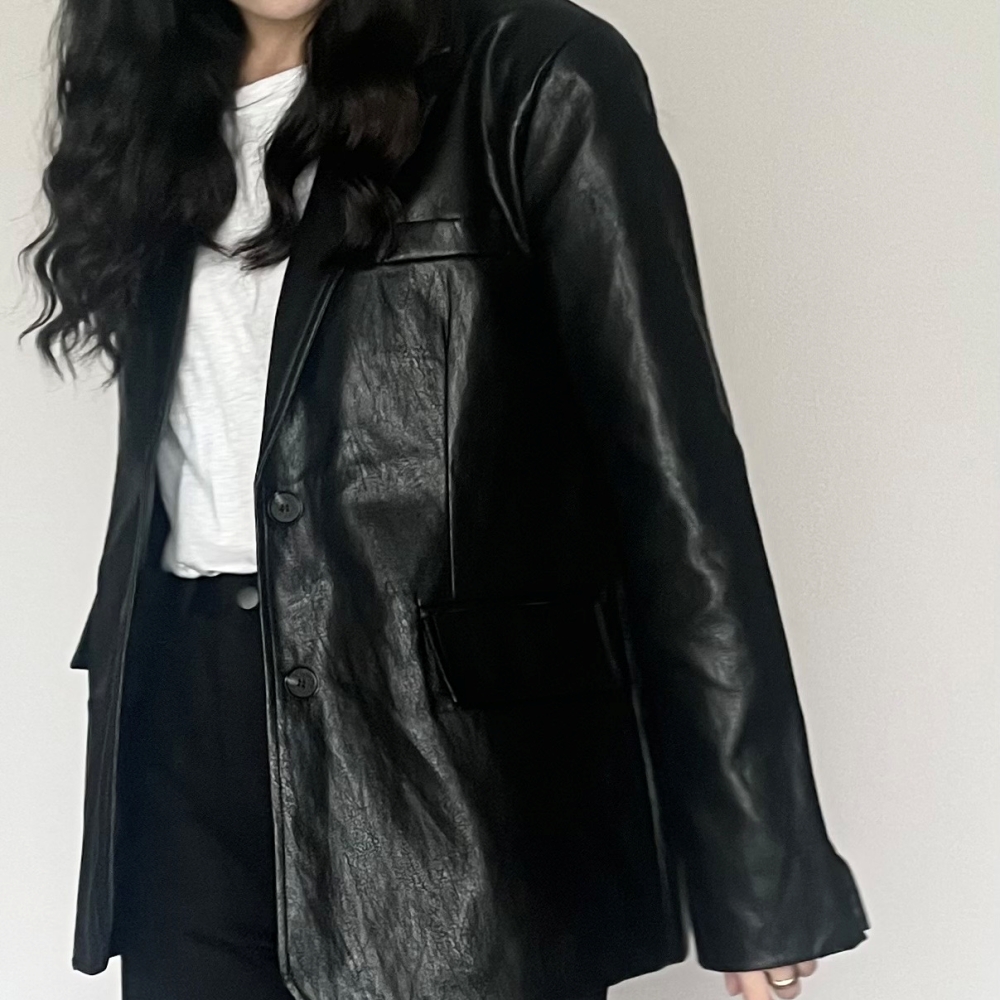루즈핏 레더 자켓 카키 블랙